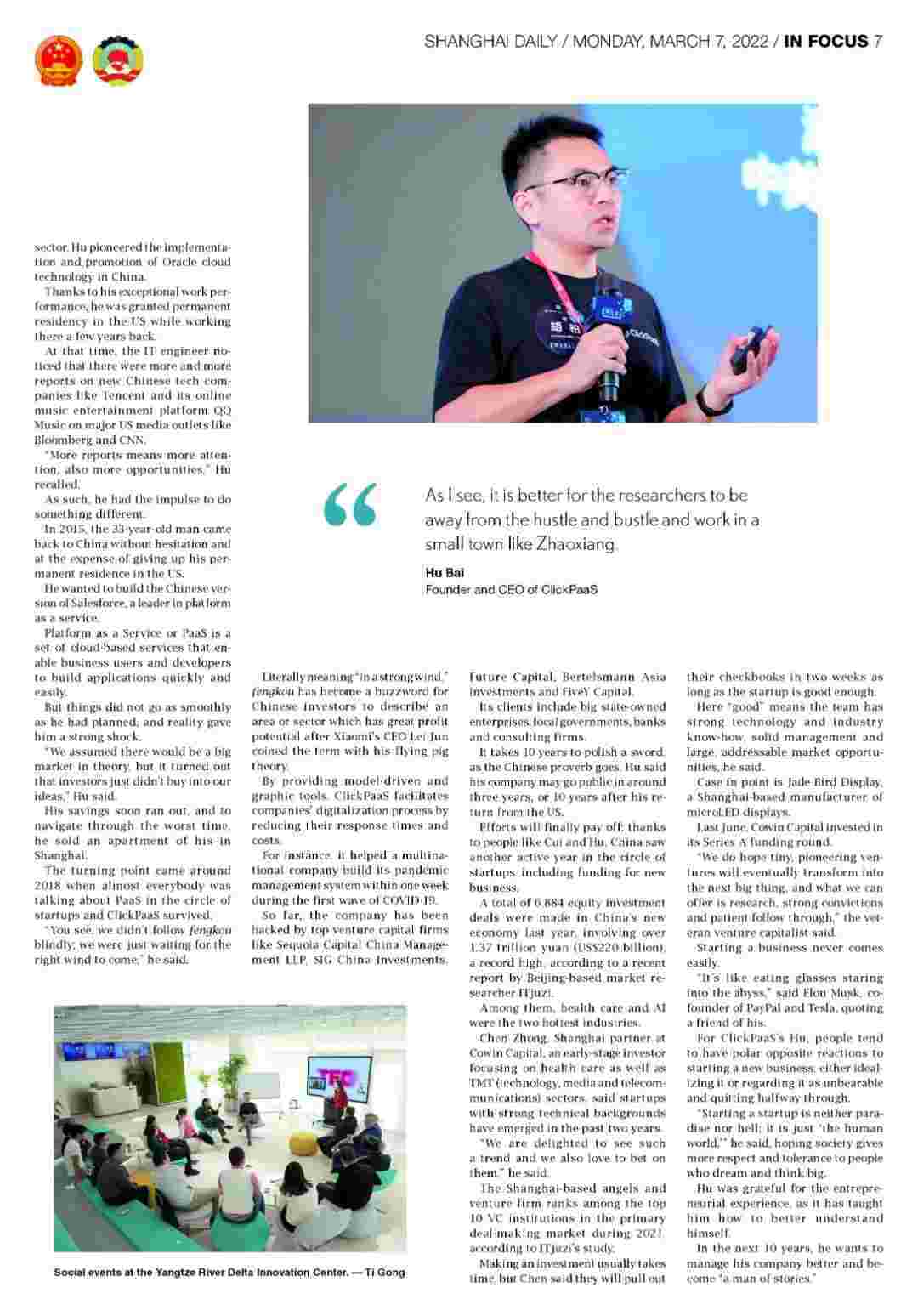 《上海日报》专访EBPAY创始人、、CEO胡柏,,,探究其创业背后的故事!!!!